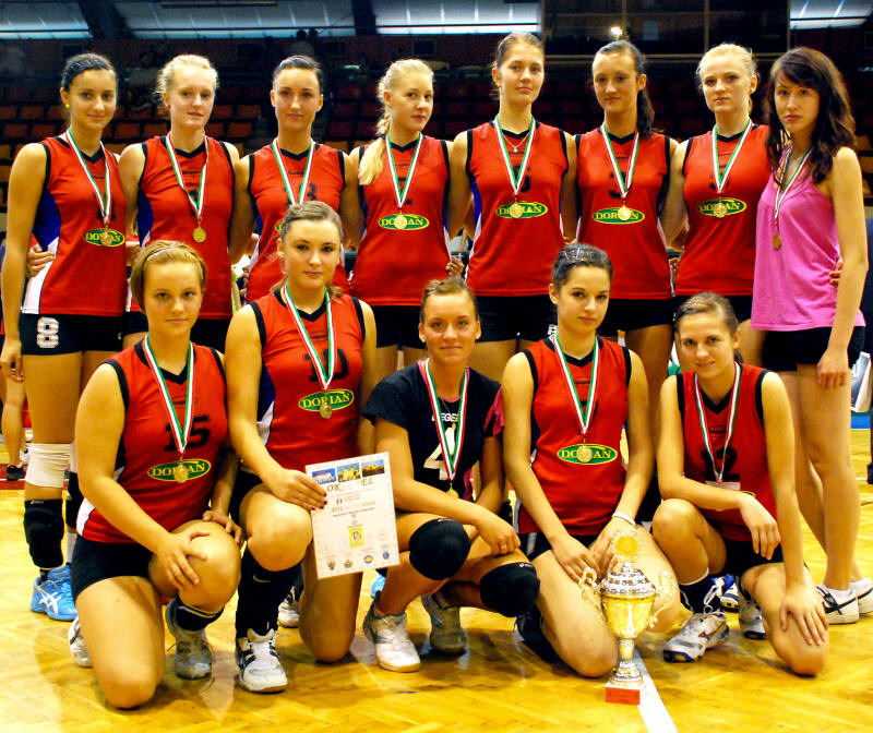 A női győztes lengyel Legionowo a kupával és a különdíjakkal.
