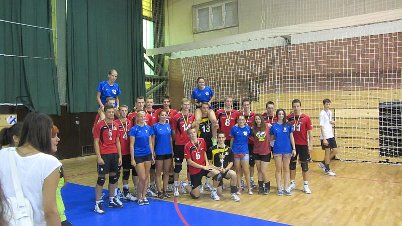 A tornagyőztes belga fiúk és az Eötvös DSE néhány lánya.