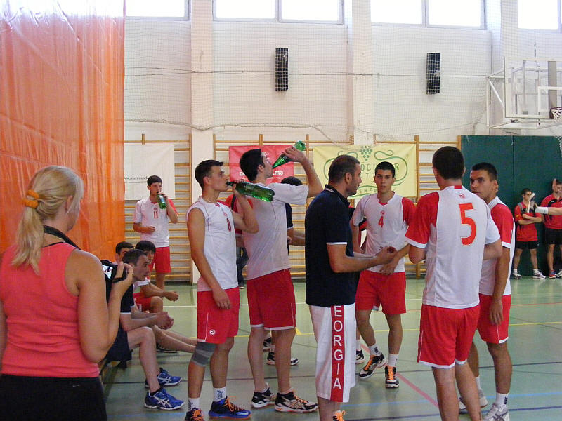 During the time outs the Georgian team freshened with traubisodas.