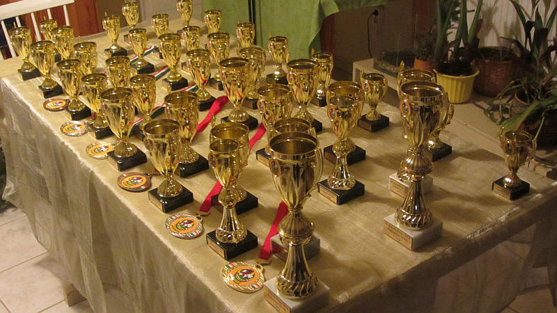 A verseny kupái és érmei.