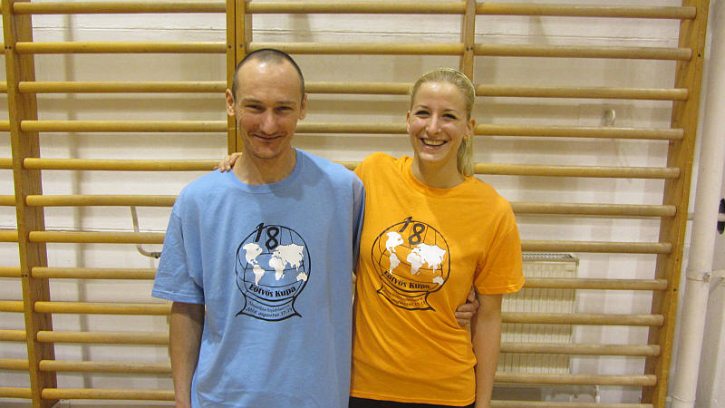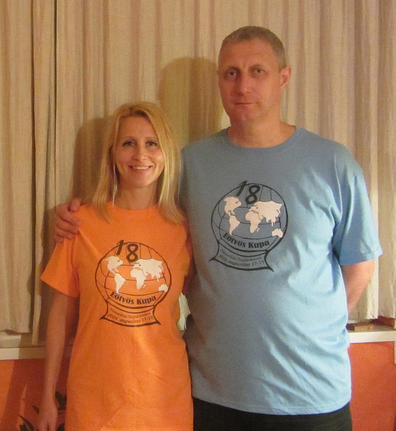 A verseny emblémázott pólói.