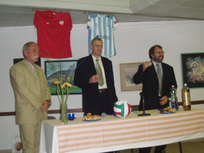 The professional forum was followed by a friendly meeting. On the toast, from the left to the right: Béla Hóbor, FIVB referee, András Szombathy, the main organizer and József Ignáth, the main sponsor of the tournament.
