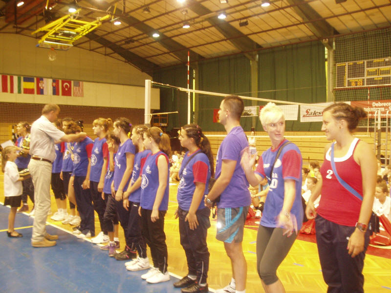 Players of girls' winner, Kikinda got their gold medals from Dr. Antal Szekeres, notary of Debrecen.